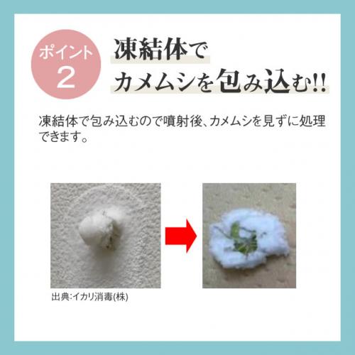 凍結体で包み込むので噴射後、カメムシを見ずに処理できます。
