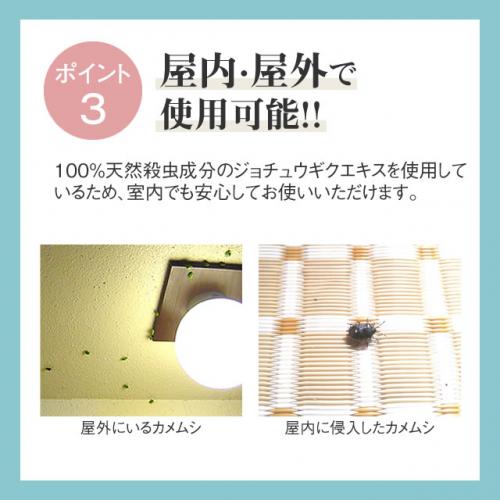 100%天然殺虫成分のジョチュウギクエキスを使用しているため、室内でも安心してお使いいただけます。