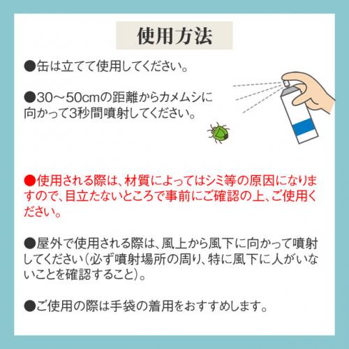 ●30〜50cmの距離からカメムシに向かって3秒間噴射してください。
