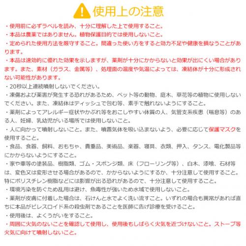 ●屋外で使用される際は、風上から風下に向かって噴射してください(必ず噴射場所の周り、特に風下に人がいないことを確認すること)。