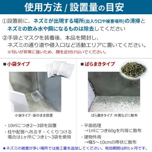 ネズミの飲み水や餌になるものは除去してください。効果が低下します。