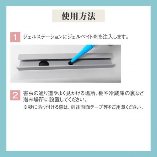 ジェル状の毒餌を注入し、害虫の潜み場所やよく見かける場所に設置します。