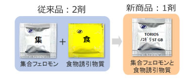 新タイプでは、この2つの誘引剤が「1個(1剤化)」になったため、作業の手間が減りました。