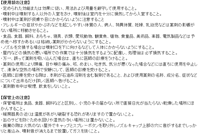 - ・成分:ペルメトリン(エクスミン)、d-T80-フタルスリン(ネオピナミンフォルテ)、灯油