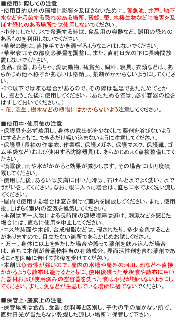 - ・用途:農業用、園芸用、害虫駆除用殺虫剤の噴霧