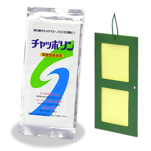 チャッポリンは、浄化槽に吊るす殺虫プレートです。蒸散性の殺虫成分が浄化槽を漂い、槽内のチョウバエ・ノミバエ(成虫)を退治します。