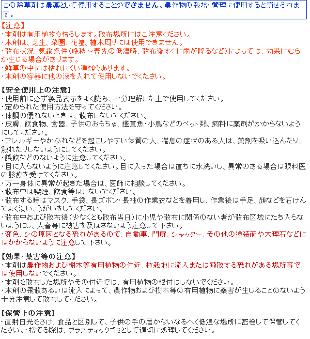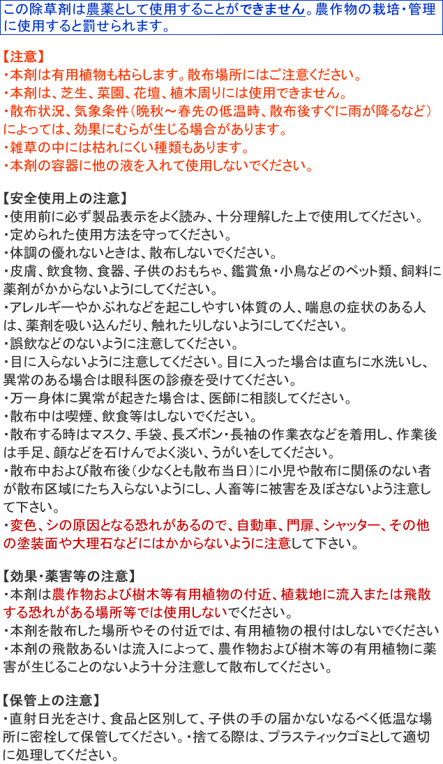 | 使用時期 | 雑草生育期(草丈30cm以下) |