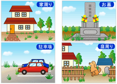 | 庭のまわり、家の前、玄関前、駐車場、お墓の除草など |