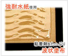 本品「プロボードL99」は、 超強「耐水紙」(水に強いシート)を使用しています。水で濡れた床面でも使いやすくなっています。