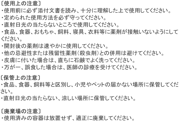 - ・適用害虫:イエヒメアリ、アルゼンチンアリ、クロヤマアリ、クロオオアリ、トビイロケアリ、オオズアリ