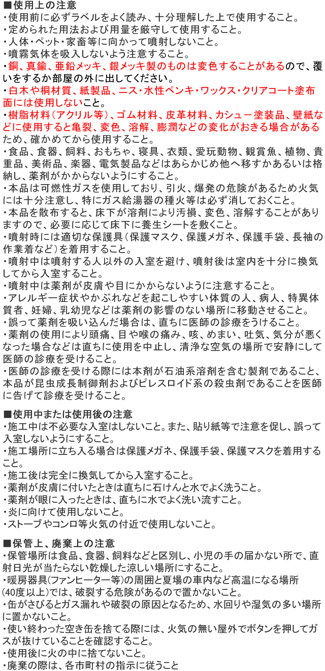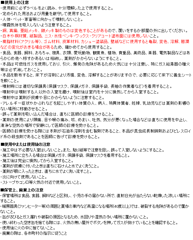 - ・有効成分:ピレスロイド系殺虫剤・昆虫成長制御剤
