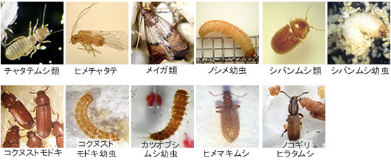 - ・倉庫でカツオブシムシ、ノコギリヒラタムシ、ヒメマキムシなど甲虫類が大量に発生している