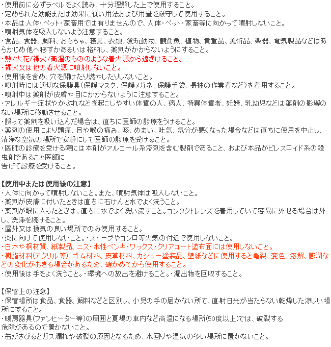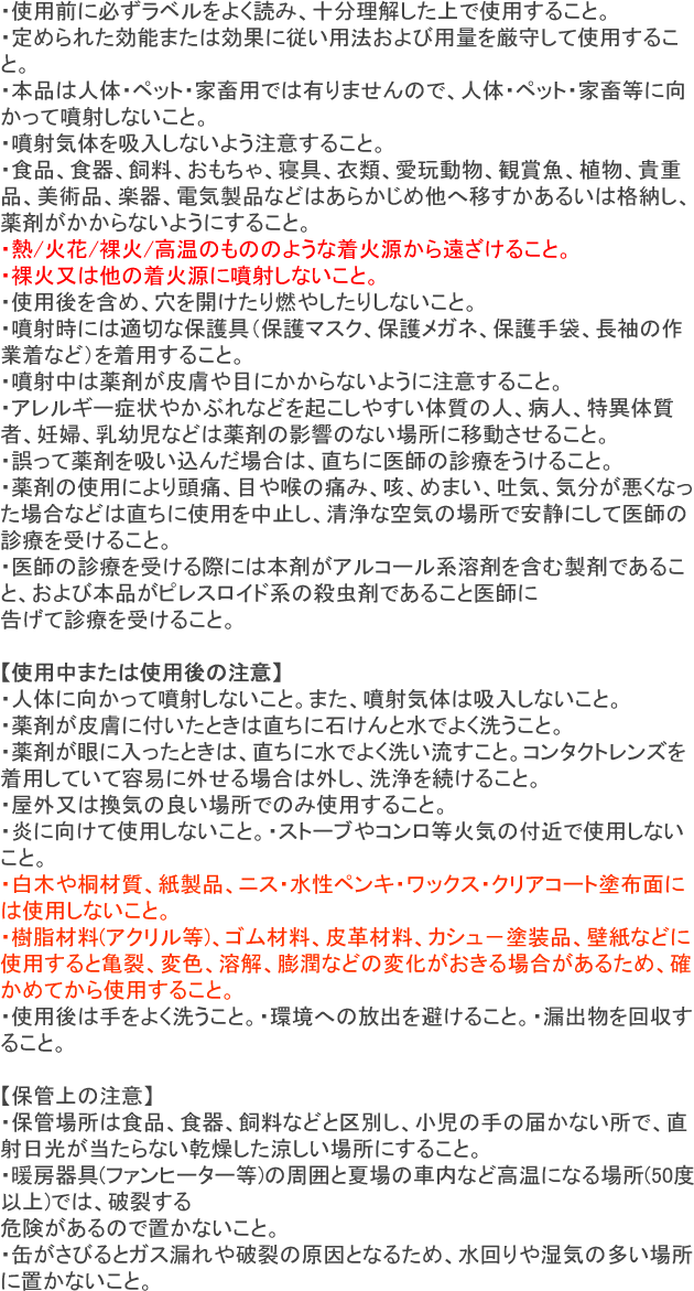- ・用法・用量:対象害虫に直接噴霧 もしくは空間に適宜噴霧