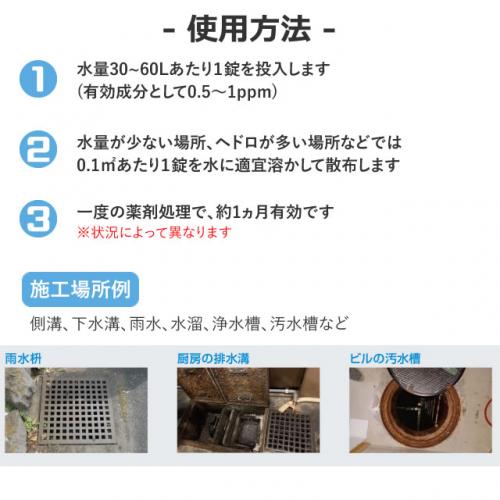- ・適用場所:側溝、下水溝、雨水升、水溜り、浄化槽、汚水槽など