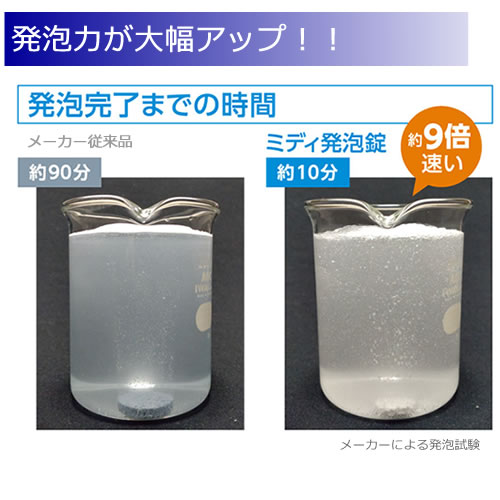 従来品(デミリン発泡錠)に比べて発泡力が高まり、有効成分の拡散性が大幅に向上しました。