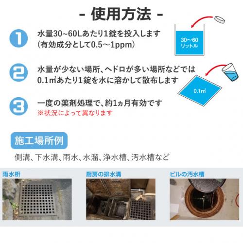 - ・適用場所:側溝、下水溝、雨水升、水溜り、浄化槽、汚水槽など
