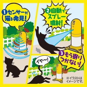 本品は、赤外線センサーで猫の動きを感知し、自動でスプレーを噴射する猫よけスプレーです。
