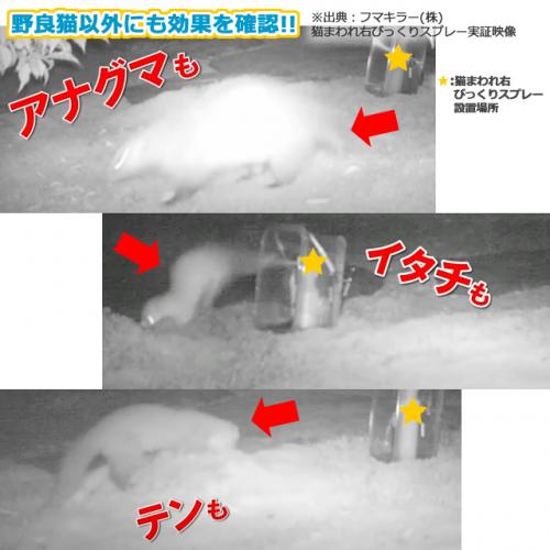 猫はスプレーの噴霧ガスと音にびっくりして逃げていきます。