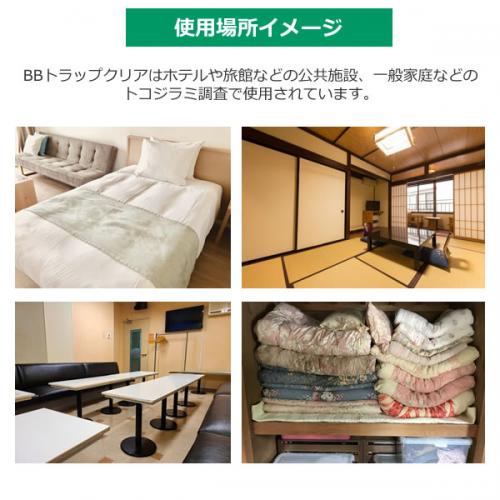 屋内にトコジラミがどのくらい発生しているのか?殺虫剤の散布後にトコジラミの数は減ったのか?など生息状況を調べるために使うことができます。