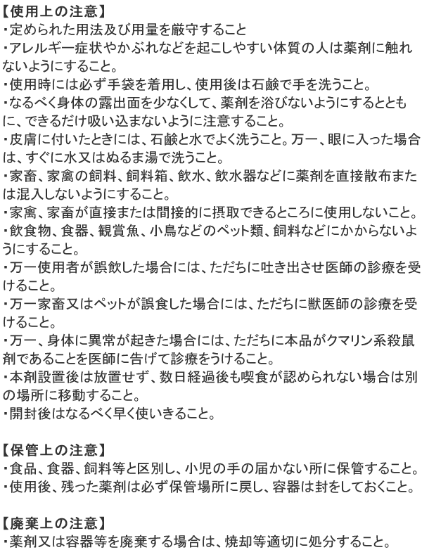 ※本品は畜舎・鶏舎用の殺鼠剤です。一般家庭や工場、ビルでは使用しないでください。