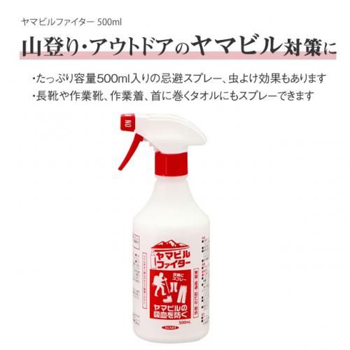 ヤマビルを直接駆除する場合は「ヤマビルファイタージェット」をご利用ください。アウトドアの際には、本品(忌避剤)とジェット(駆除スプレー)の併用もおすすめいたします。