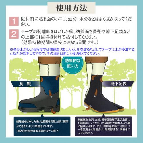 ■ヤマビルの忌避(テープより上のヤマビルの侵入防止)が使用用途になります。