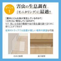 - ・対象害虫:チャタテムシ、トビムシ、塵性ダニ類、コナダニ、タカラダニ、ホソヒラタムシ、ユスリカ、タマバエ、チョウバエ、クロバネキノコバエ、ショウジョウバエ、イエカ、イエバエ、コクヌストモドキ、シバンムシ、ヒメマキムシ、ヒョウホンムシ、ハムシ、メイガ、チャバネゴキブリ、モリチャバネゴキブリ、ハネカクシ、寄生ハチ類、アリ、コオロギ、ムカデ、ゲジ、ダンゴムシ、クモなど