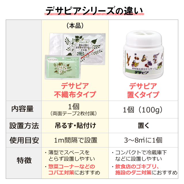 デサピア 不織布タイプは、植物成分で虫を寄せつけない不快害虫用きひ剤です。