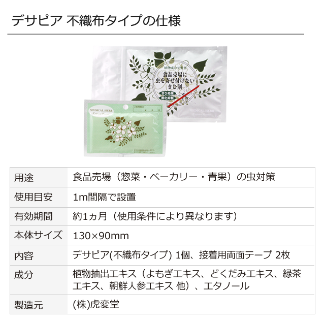 【メール便対応可】 デサピア 不織布タイプ 1個 [植物成分 忌避剤 食品売場 コバエ 有機JAS認定]