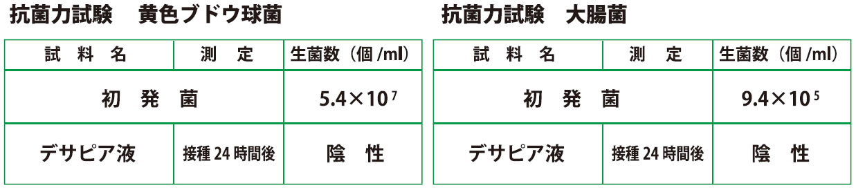 大腸菌・黄色ブドウ球菌などに対する抗菌効果を得ています。