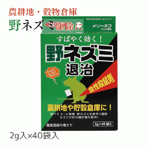 本品メリーネコリン化亜鉛は、野鼠(やそ)に対して高い効果のある殺鼠剤です。