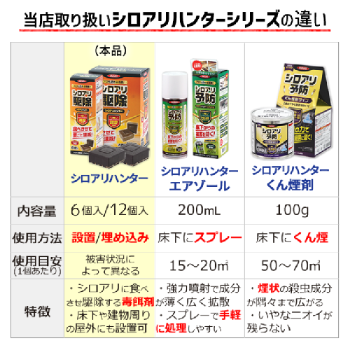 ※シロアリハンター6個入も、15個入も中身は全て同じです。