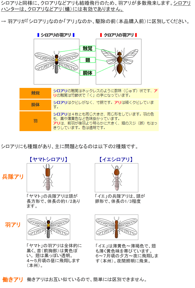 (2)シロアリハンターに使用している駆除剤(殺虫成分)は、遅効性の薬剤です。