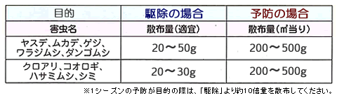 | 害虫 | 散布場所・散布量 |