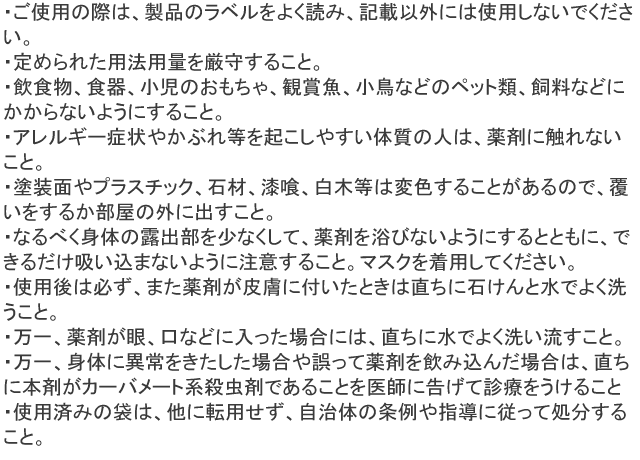 ※雨が降る前の日には散布しないでください。(流されるとすぐに効果が低下します。)