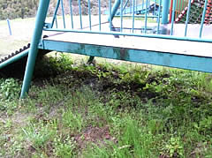 自然公園の遊具の下やけもの道の侵入防止対策にJJボアを散布。