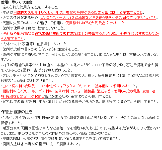 - ・有効成分:ピレスロイド系殺虫剤・昆虫成長制御剤