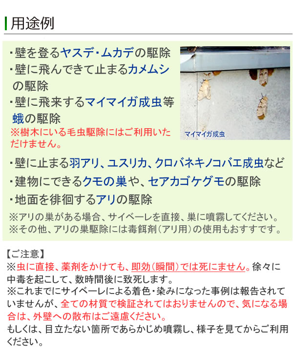 (ヤスデ・アリ・ダンゴムシ・ゲジ・ムカデ・カメムシ・ハサミムシ・ワラジムシ、蛾などの壁に止まる飛来昆虫の駆除) - ・剤型:フロアブル剤
