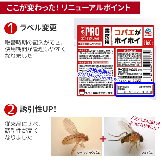 誘引性がアップし、対象害虫にノミバエ類も追加となりました。