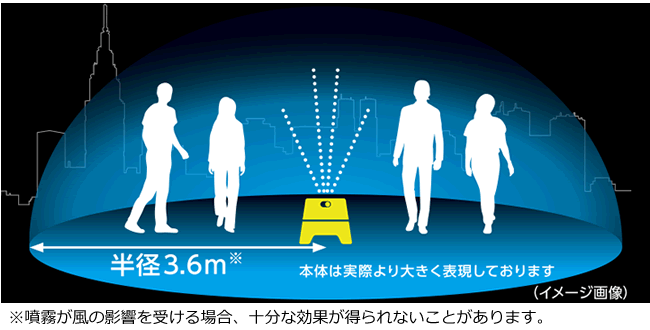これ1台で複数の人が活動する屋外の空間(本品を中心に半径3.6m)の蚊を忌避します。