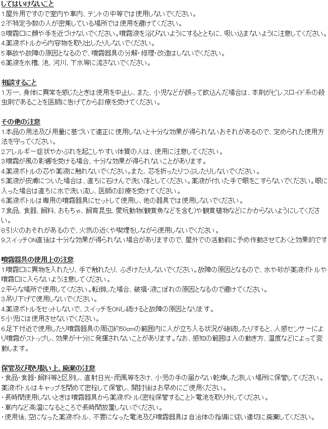 - ・効能・効果:屋外の蚊成虫の忌避