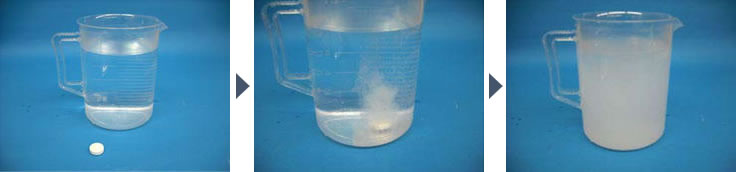 発泡性の錠剤のため、水深のある場所でも速やかに成分が広がり、効果が出やすいです。
