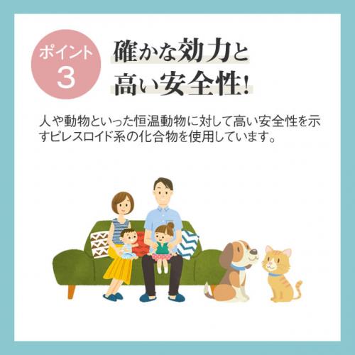 人や動物といった恒温動物に対して高い安全性を示すピレスロイド系の化合物を使用しています。
