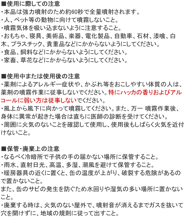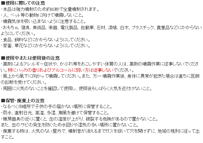 ★本品は強力ジェット噴射タイプです。連続噴射すると、約60秒で薬剤がなくなります。