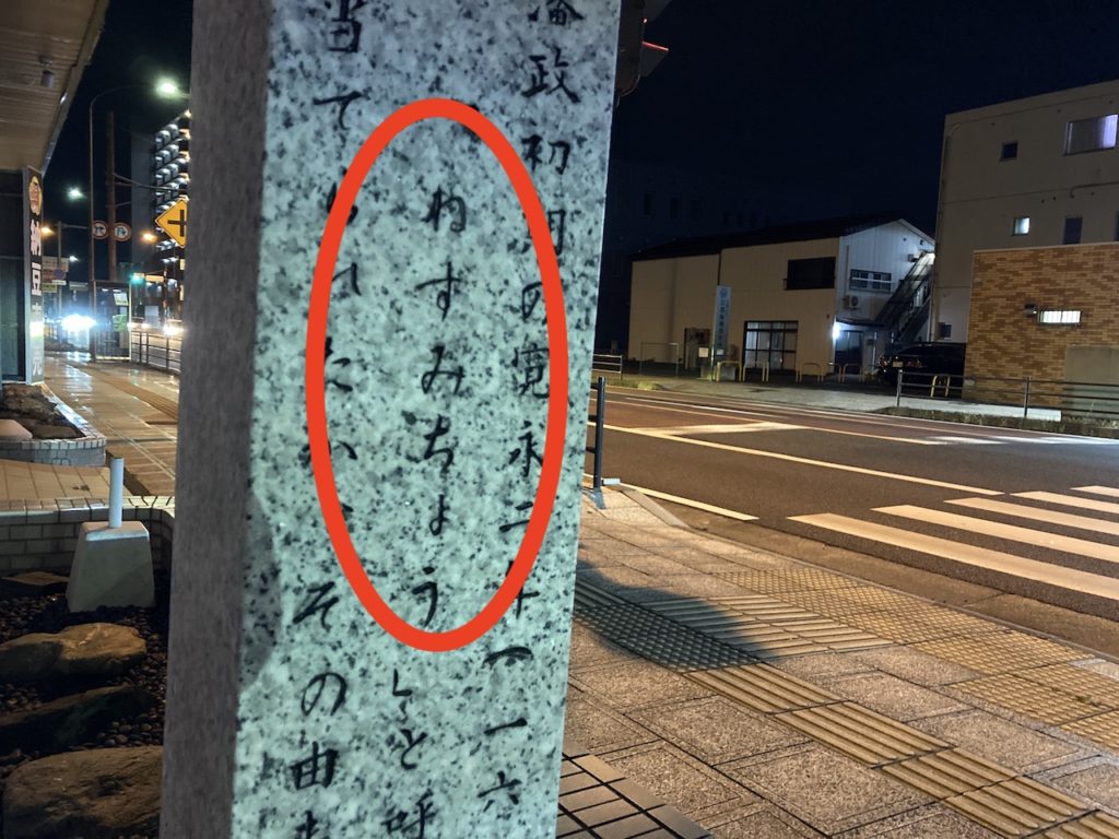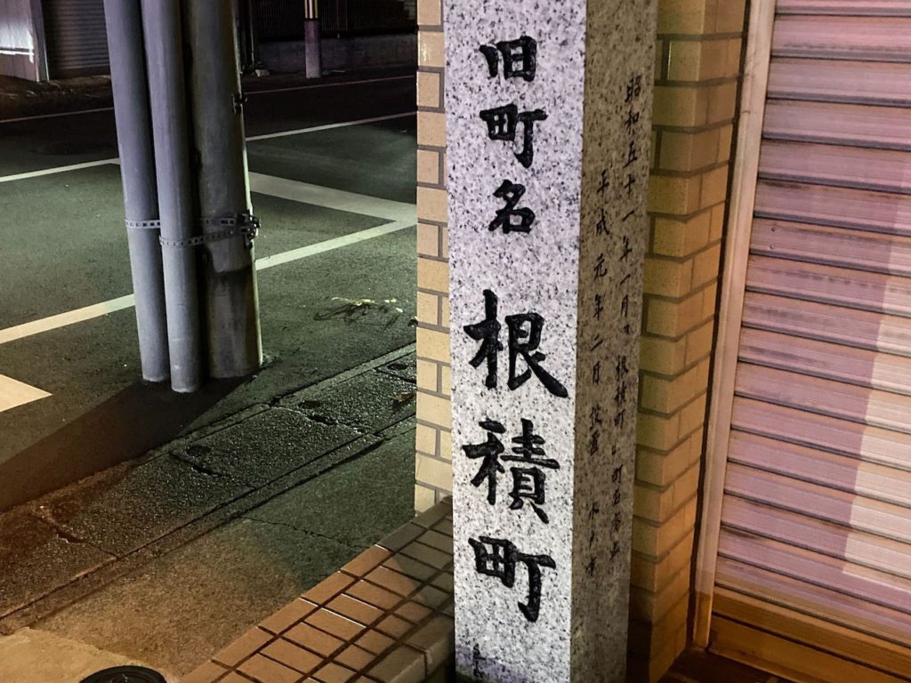 それがこちら、茨城県水戸市の、とある場所である。きちんと1日の業務を終えてからの聖地巡礼であったため、夜間の撮影となった。それはさておき話を元に戻す。今は別の町名へと変わってしまったそうだが、かつて根積(ネズミ)町と呼ばれたことを示す石碑(標示柱)がある。ちょっとしたネズミ百景である。