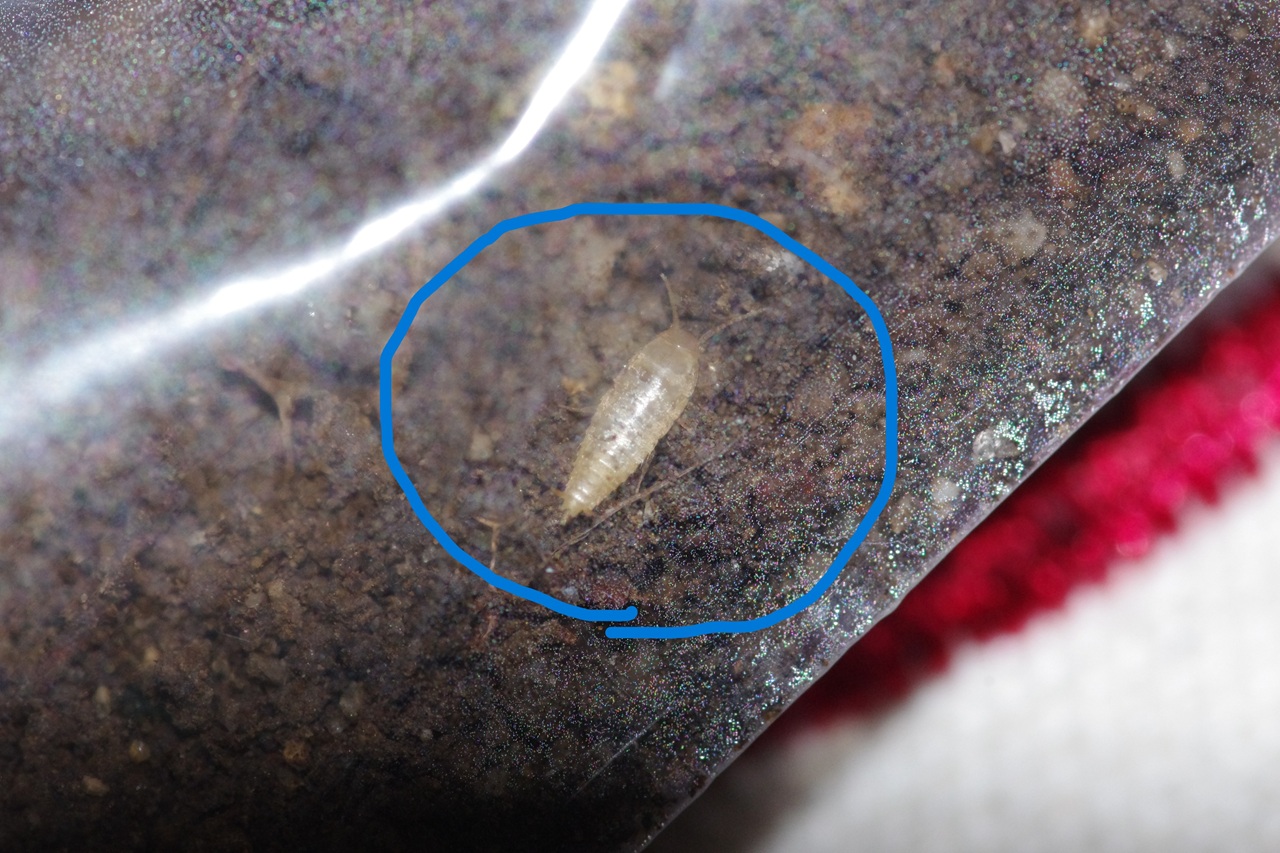 某日、実家で庭仕事をしていた時のことである。地面をスコップで掘り返したところアリの巣を破壊してしまったらしく、辺りは蜘蛛の子を散らしたような騒ぎとなった。すると、である。その黒いアリに紛れて素早く逃げ回る白い虫が見つかったため確保した。その正体は写真のようなシミの仲間であった。おそらくアリの巣に生息するタイプのものであろう。なお、少し掘っただけで3匹も見つかった。ということは、巣全体では一体何匹のシミが住み着いているのだろうか。疑問である。こういった謎を調べた研究例があれば見てみたいと思ったところで本日は筆を置かせていただきたい。